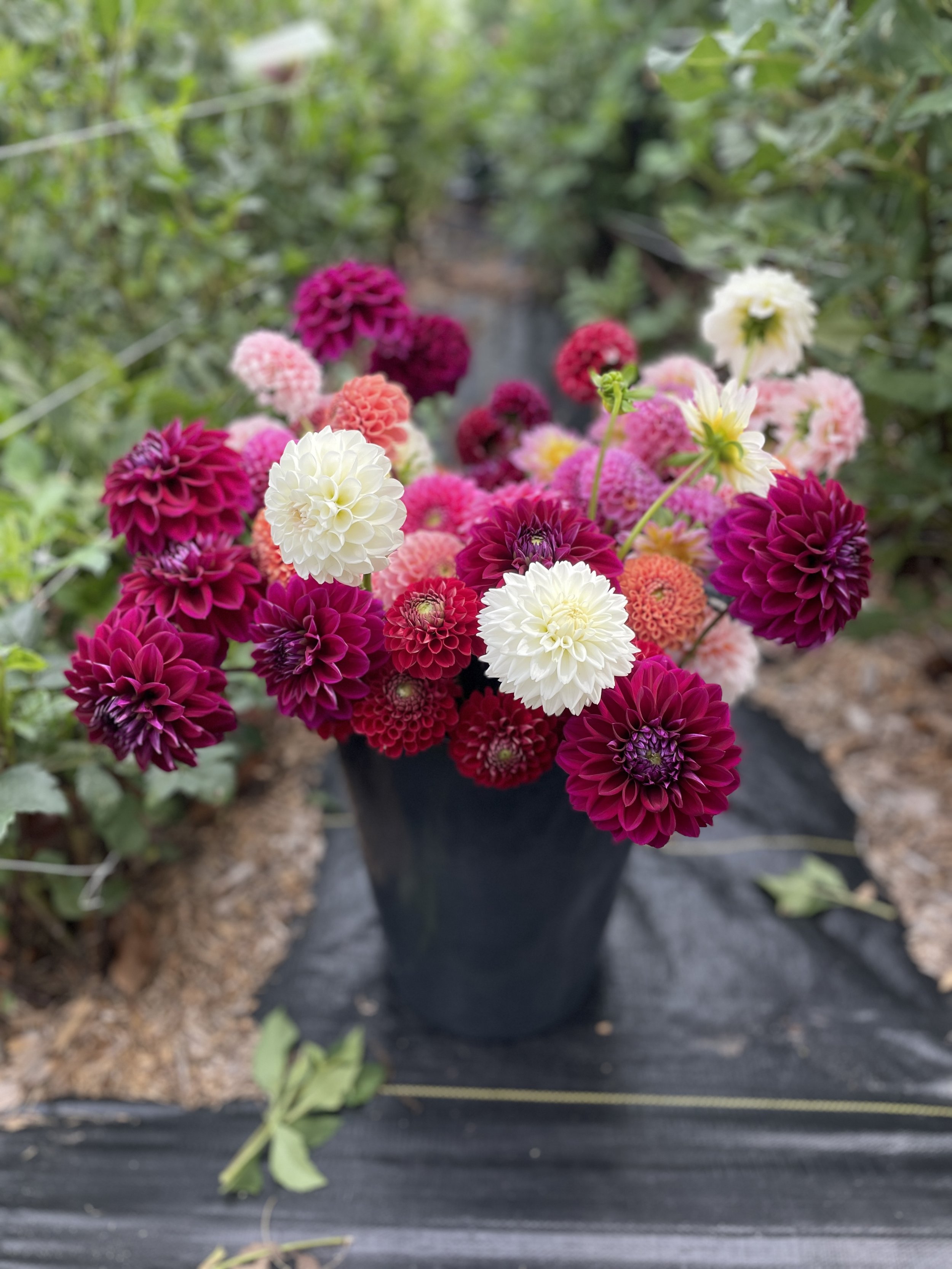 We use organic farming practices, and everything is planted, harvested and weeded by hand. Flower farming is hard work, but it’s a labor of love. Our fresh cut flowers are available for purchase online or in store from April - October. We also sell vases & small gifts in the flower room. Dried flowers and dried lavender are available all year. In November & December we have locally grown & foraged holiday arrangements, wreaths & potted bulbs.